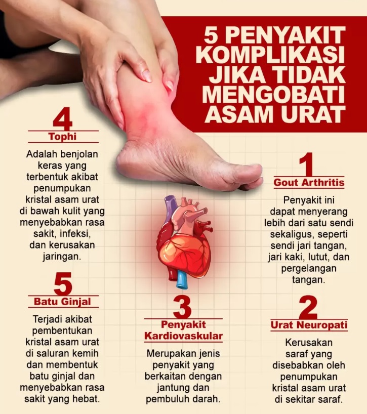 Asam urat bukanlah penyakit ringan jika tidak ditangani dengan baik. Tingginya kadar asam urat dalam tubuh bisa memicu berbagai komplikasi berbahaya, mulai dari batu ginjal hingga gangguan jantung dan mental. Oleh karena itu, penting untuk menjaga kadar asam urat tetap normal dengan mengatur pola makan, gaya hidup sehat, serta konsultasi rutin ke dokter. Jika sudah muncul gejala, segera tangani sebelum menimbulkan kerusakan yang permanen.