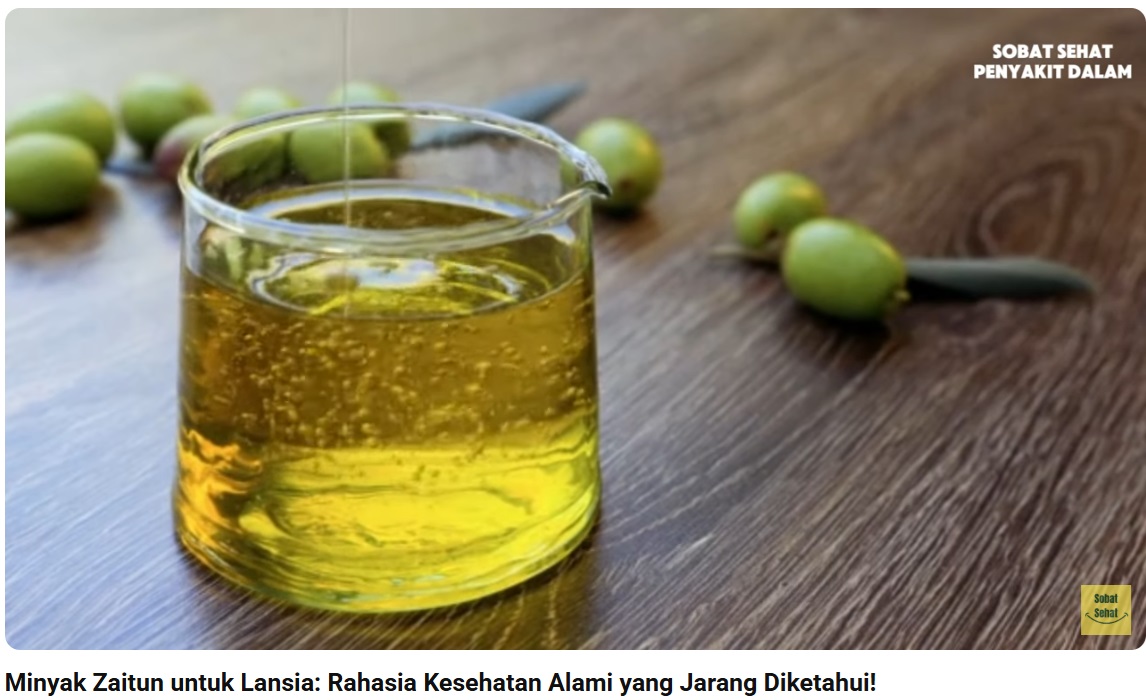 • Sebuah laporan kasus dari Semarang (2023) menyajikan penggunaan minyak zaitun topikal pada pasien hemodialisis dengan pruritus uremik (gatal-gatal akibat gagal ginjal). Setelah 3 kali aplikasi per hari selama seminggu, dilaporkan terjadi penurunan keparahan gatal berdasarkan penilaian menggunakan skala VAS. prosiding.d3per.uwhs.ac.id